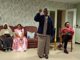 Amid an array of appetizers, Catherine pour sparkling wine for the group. Opening the bottle, however, was no easy task. After many attempts it finally opened--and spilled all over the floor. Fortunately, there was enough left to celebrate this special occasion.
