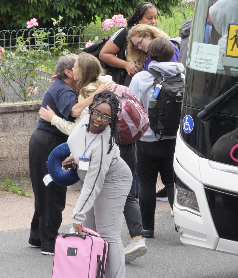 Sr. Joan Lescinski (Carondelet) greeted each student as s/he got off the bus. The group had talen a long flight from JFK Airport in New York (the rendez-vous airport) and then a two-hour bus ride from Lyon St. Exupèry Airport to Le Puy. The students' energy and enthusiasm for this unique pilgrimage opportunity in France never slowed them down.